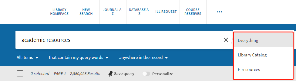 - Selecting “Everything” provides a gateway to a wealth of scholarly content, including articles, books, ebooks, journals, theses, videos, open access resources and more.