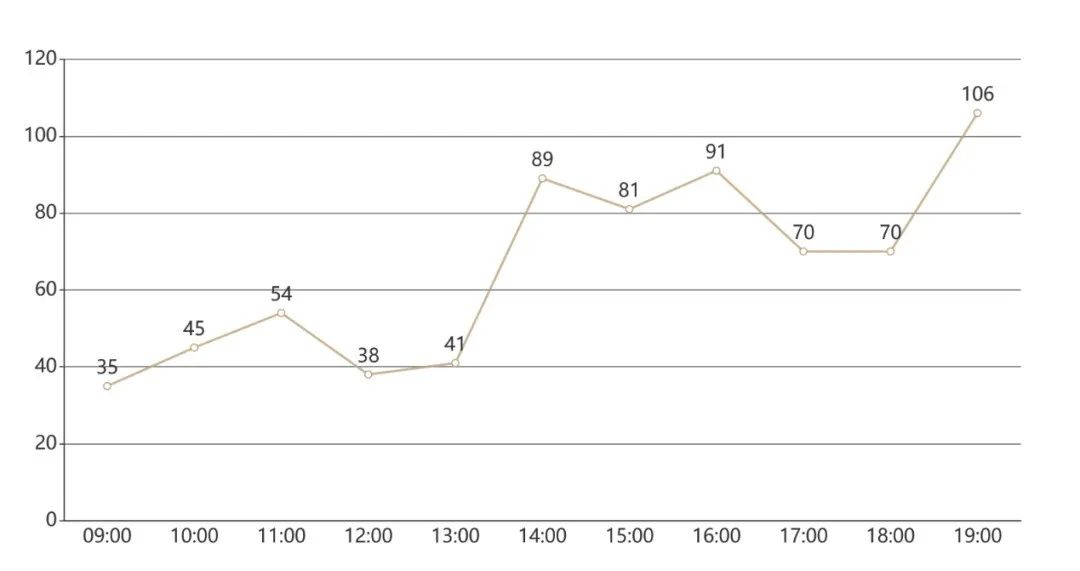 配备了MET英语口语数据库练习设备的静音舱,去年总使用时间为720小时。20级同学使用得最多,共235小时。晚上19:00-20:00是最受欢迎的时段,共被使用了106个小时。