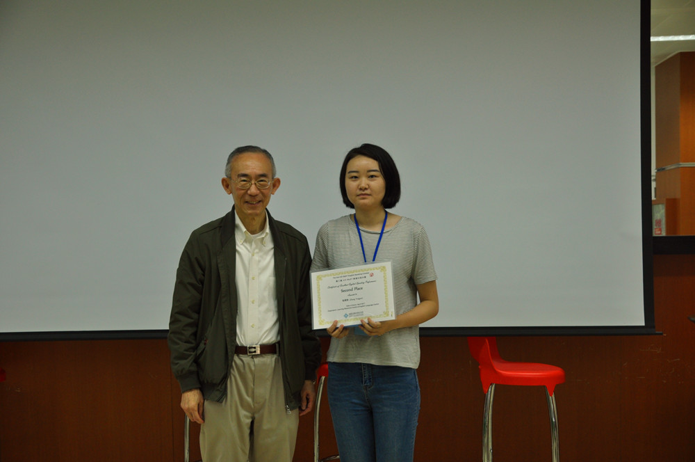 Prof Zee Sze Yong presents the first place to Zhang Xingquan