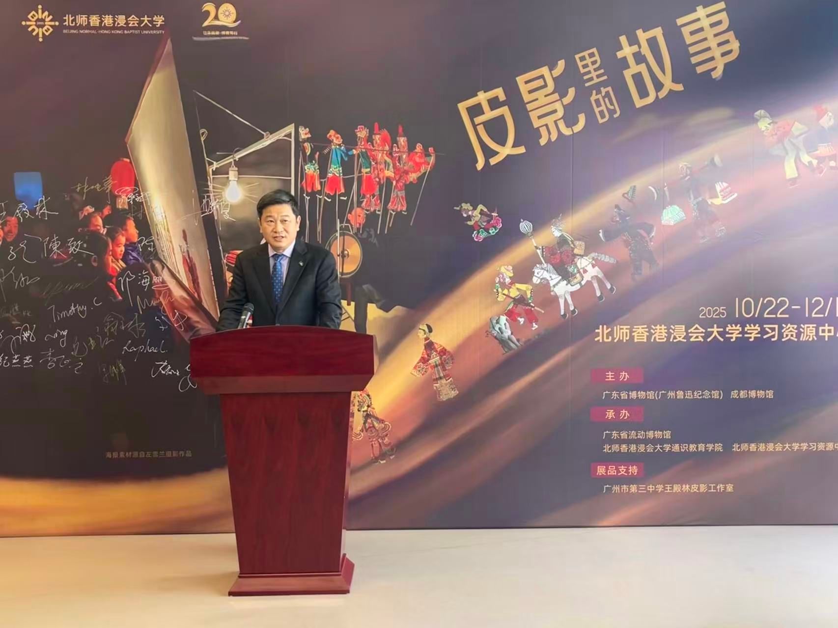 “Leather carves landscapes of grandeur, and light and shadows reflect ancient souls.” On the afternoon of October 22, 2025, the themed exhibition "Stories in Shadow Puppetry" was officially inaugurated at the BNBU Learning Resource Centre, and will remain on display until December 15, 2025. This unique showcase is sponsored by the Guangdong Museum and the Chengdu Museum, organized by the Guangdong Mobile Museum, BNBU's School of General Education, and the Learning Resource Centre, with support from Wang Dianlin Shadow Puppet Studio of Guangzhou No. 3 Middle School.